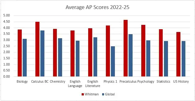 AP Exams Over the past 4 years, 95% of Whitman graduates have scored a 3 or higher on at least one AP exam.